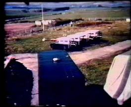 In the immediate foreground is the MRE Porton Down mobile laboratory- Night Ferry. Air samples obtained by the mobile sampling teams were incubated here and the amount of bacteria obtained from each sampling location were counted. The results of this process were used to give a crude indication of the dosage received by persons exposed to the bacterial cloud. Forecasting the path of the cloud was critical in order that the mobile teams could be placed in locations suitable to obtain a good air sample.