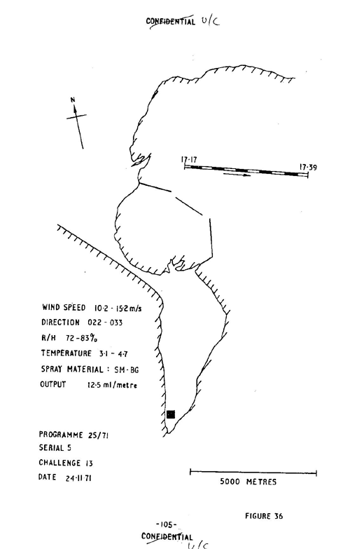 The ETV ICEWHALE then sailed a straight line track of 17.6 miles while spraying 488 litres of bacterial suspension. Mobile teams were positioned in the predicted path of the massive cloud at distances of between 18-20 miles from the source. None of the mobile teams were able to collect any air samples of the bacterial cloud. The trial was a failure.